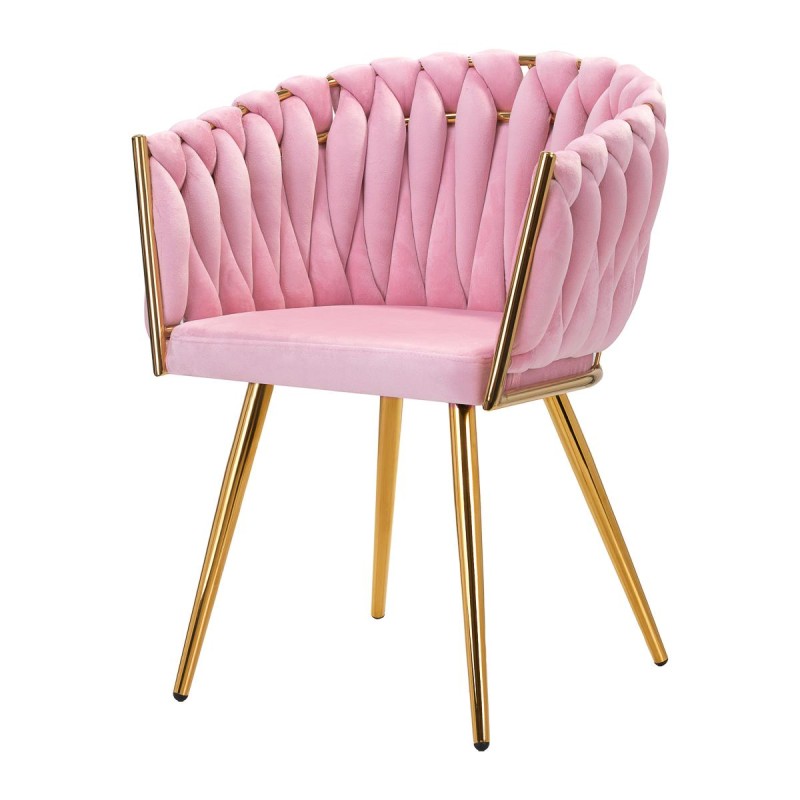 - Jak dobrać krzesło do stylu salonu, aby podkreślić jego charakter? Wybierz odcień różu i wykończenia w odcieniach złota, jeśli chcesz dodać wnętrzu elegancji; pleciona faktura oparcia działa jako subtelny akcent designerski, który współgra z nowoczesnymi i klasycznymi aranżacjami.