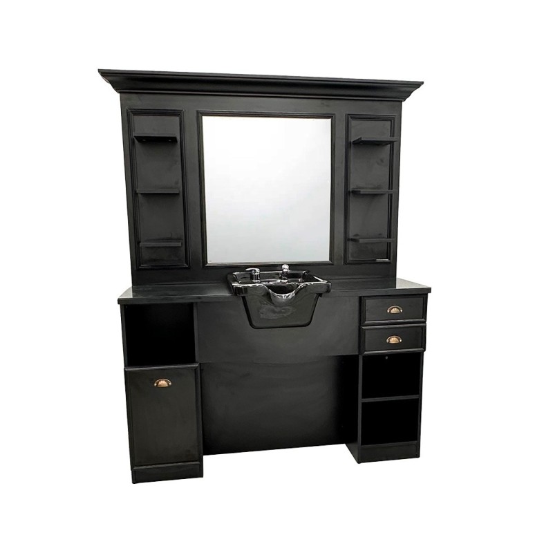 Profesjonalne stanowisko fryzjerskie/barberskie w stylu vintage to idealne połączenie elegancji z funkcjonalnością, stworzone z myślą o salonach fryzjerskich i barberskich, które pragną wyróżnić się nie tylko jakością usług, ale także wyjątkowym designem wnętrza.