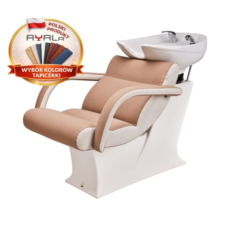 Do myjni fryzjerskich Ayala dostępne są różne akcesoria, takie jak podnóżki, uchwyty na suszarki, podkładki pod kark, które zwiększają komfort korzystania z urządzenia podczas usług fryzjerskich.
