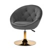 Luksusowe wykończenie sprawia, że mebel wpada w oko. Przyjemne w dotyku, welwetowe obicie w odcieniach granatu wraz z ozdobnym pikowaniem nadają mu wyjątkowego charakteru. Stabilna, okrągła podstawa w odcieniach złota dodaje elegancji, idealnie komponując się z welwetem. Estetyka wykonania, komfort użytkowania, ergonomicznie wyprofilowane oparcie i estetyczne pikowanie sprawiają, że krzesło spełni wymagania nawet najbardziej wymagających użytkowników.
