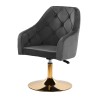 Ciekawy design nadaje krzesłu wyjątkowego charakteru. Przyjemne w dotyku, welwetowe obicie w odcieniach czerni wraz z ozdobnym pikowaniem sprawiają, że będzie ozdobą każdego wnętrza. Stabilna, okrągła podstawa w odcieniach złota dodaje elegancji, idealnie komponując się z welwetem. Estetyka wykonania, komfortowo osadzone podłokietniki, ergonomicznie wyprofilowane oparcie i estetyczne pikowanie sprawiają, że krzesło spełni wymagania nawet najbardziej wymagających użytkowników.