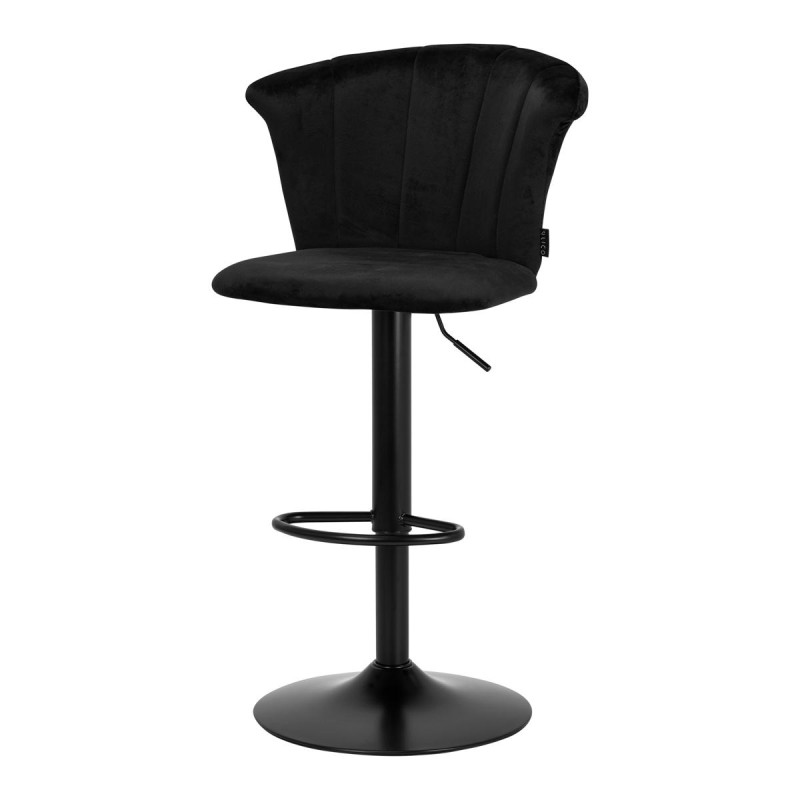 Przyjemne w dotyku, welwetowe obicie w odcieniach czerni nadaje hokerowi ekskluzywnego charakteru, a estetyczne przeszycia na oparciu, imitujące kształt muszli, podkreślają unikatowy wygląd mebla. Minimalistyczne wykończenie sprawia, że mebel świetnie wpasuje się w każde wnętrze. Matowo wykończony stelaż w odcieniach czerni dodaje elegancji i prestiżu, idealnie komponując się z aksamitem.