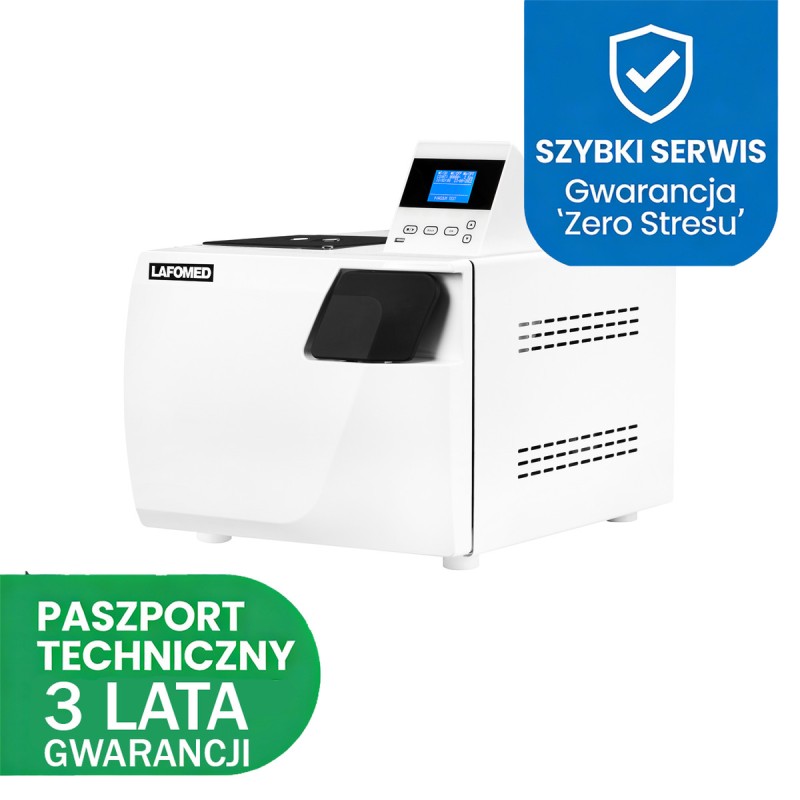 Autoklaw Lafomed Compact Line objęty jest 24-miesięczną gwarancją, którą można przedłużyć o kolejne 12 miesięcy po wykonaniu przeglądu technicznego. Do zestawu dołączamy paszport techniczny gratis.