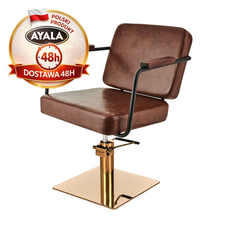 Brązowy Fotel Fryzjerski ENZO - Złota Kwadratowa Podstawa - Ayala 48h