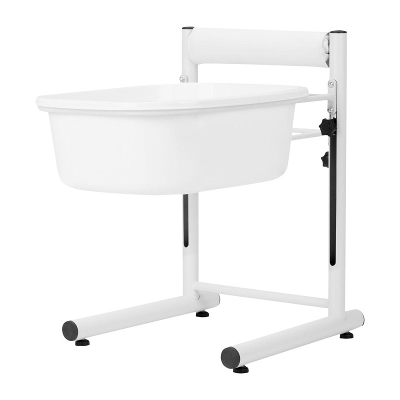 Służy do moczenia nóg przed zabiegiem pedicure. Jest bardzo wygodny dla klientki i dla pedicurzystki, ma płynną regulowaną wysokość miski. Można dopasować do każdej wysokości fotela. Na oparciu bro