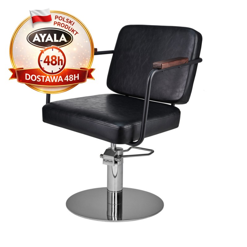 Czarny Fotel Fryzjerski ENZO - Srebrna Okrągła Podstawa - Ayala 48h