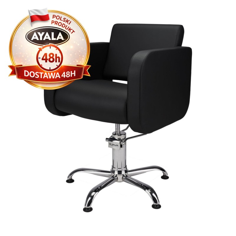 Czarny Fotel Fryzjerski GLOBE - Srebrna Pięcioramienna Podstawa - Ayala 48h