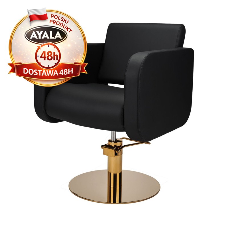 Czarny Fotel Fryzjerski GLOBE - Złota Okrągła Podstawa - Ayala 48h