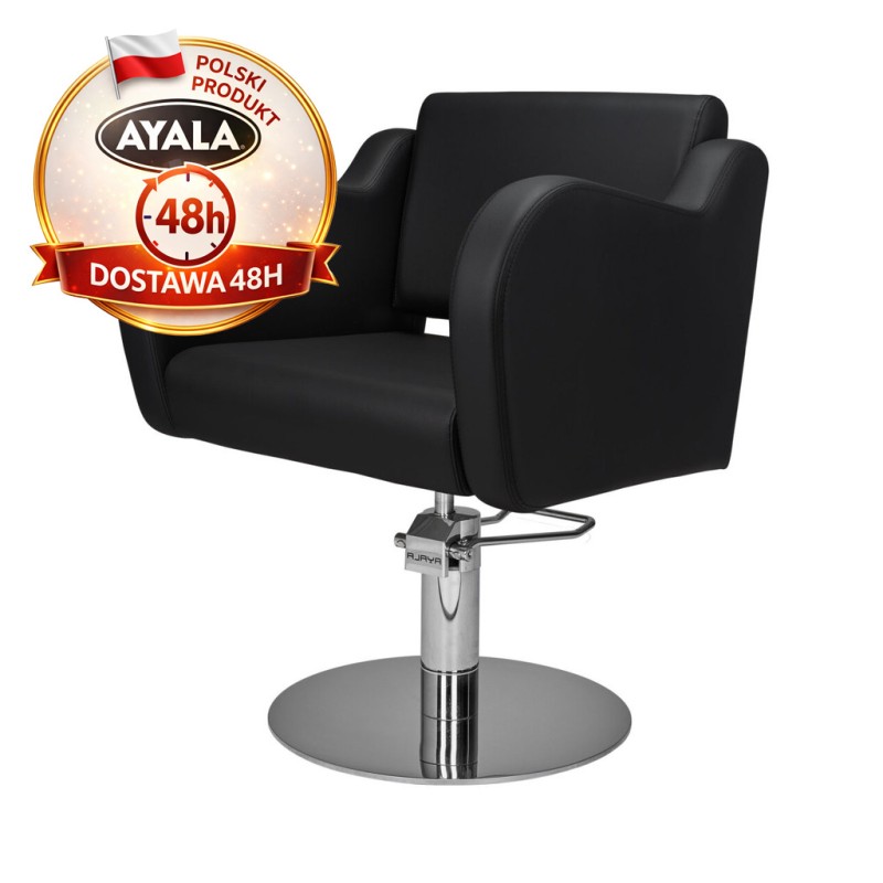 Czarny Fotel Fryzjerski HOLLY B  - Srebrna Okrągła Podstawa - Ayala 48h -Fotele fryzjerskie-