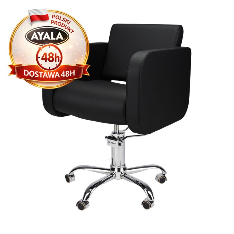 Czarny Fotel Fryzjerski HOLLY B - Srebrna Pięcioramienna Podstawa - Ayala 48h