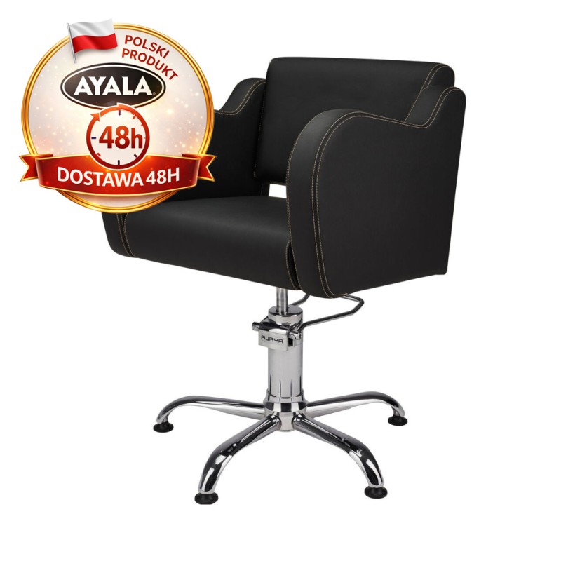 Czarny Fotel Fryzjerski HOLLY G - Srebrna Pięcioramienna Podstawa - Ayala 48h
