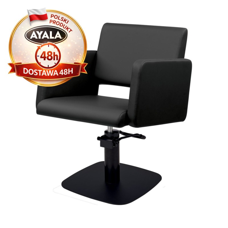 Czarny Fotel Fryzjerski LEA - Czarna Kwadratowa Podstawa - Ayala 48h