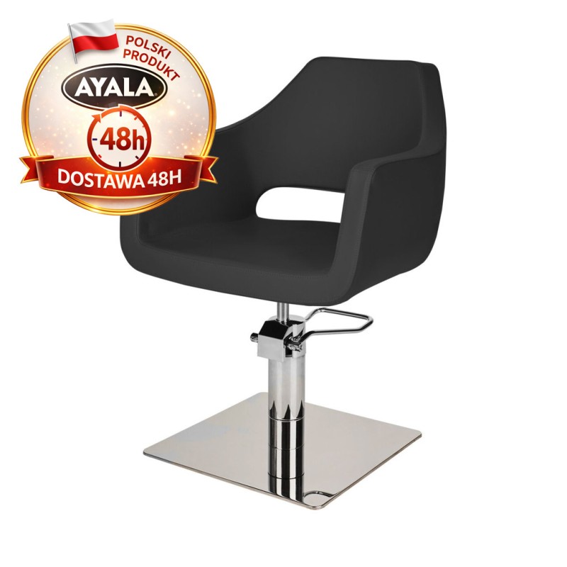 Czarny Fotel Fryzjerski MAREA - Srebrna Kwadratowa Podstawa - Ayala 48h -Fotele fryzjerskie-