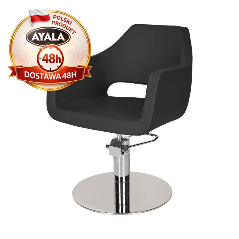 Czarny Fotel Fryzjerski MAREA - Srebrna Okrągła Podstawa - Ayala 48h