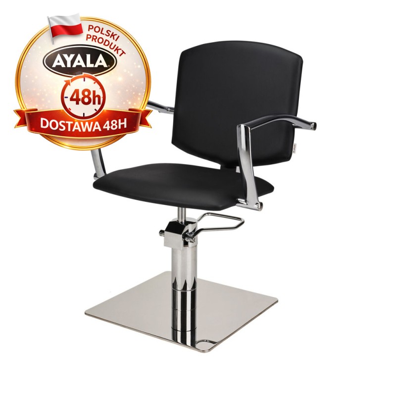 Czarny Fotel Fryzjerski PAKO - Srebrna Kwadratowa Podstawa - Ayala 48h