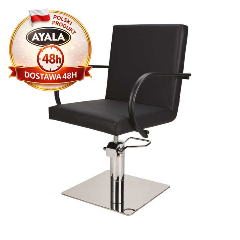 Czarny Fotel Fryzjerski PIK - Srebrna Kwadratowa Podstawa - Ayala 48h