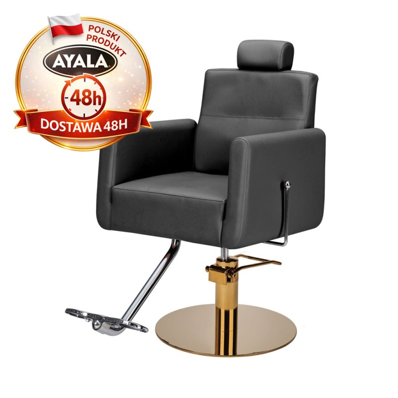 Czarny Fotel Fryzjerski RAY - Złota Okrągła Podstawa - Ayala 48h