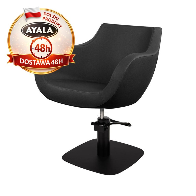 Czarny Fotel Fryzjerski THOMAS - Czarna Kwadratowa Podstawa - Ayala 48h