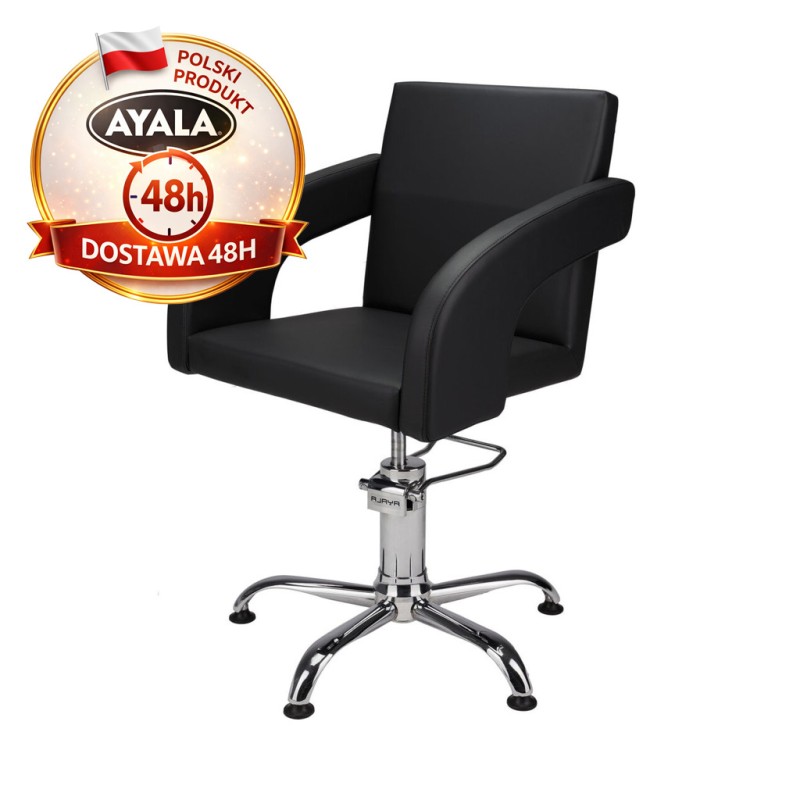 Czarny Fotel Fryzjerski TINA - Srebrna Pięcioramienna Podstawa - Ayala 48h