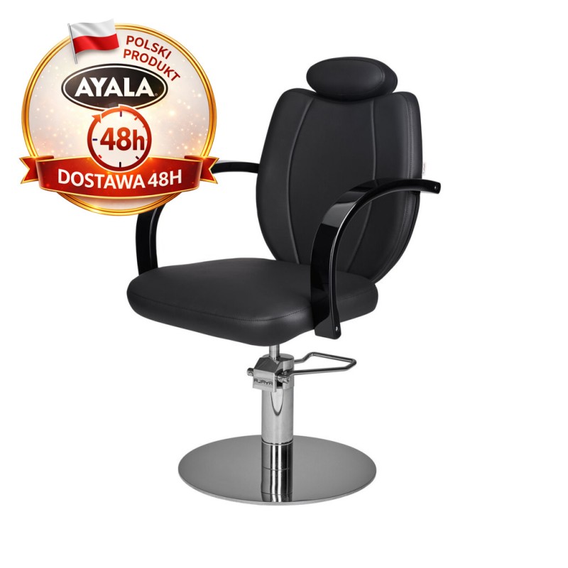 Czarny Fotel Fryzjerski TOLEDO - Srebrna Okrągła Podstawa - Ayala 48h