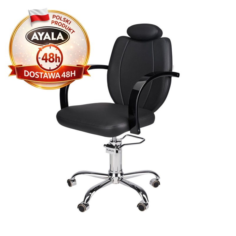 Czarny Fotel Fryzjerski TOLEDO - Srebrna Pięcioramienna Podstawa - Ayala 48h