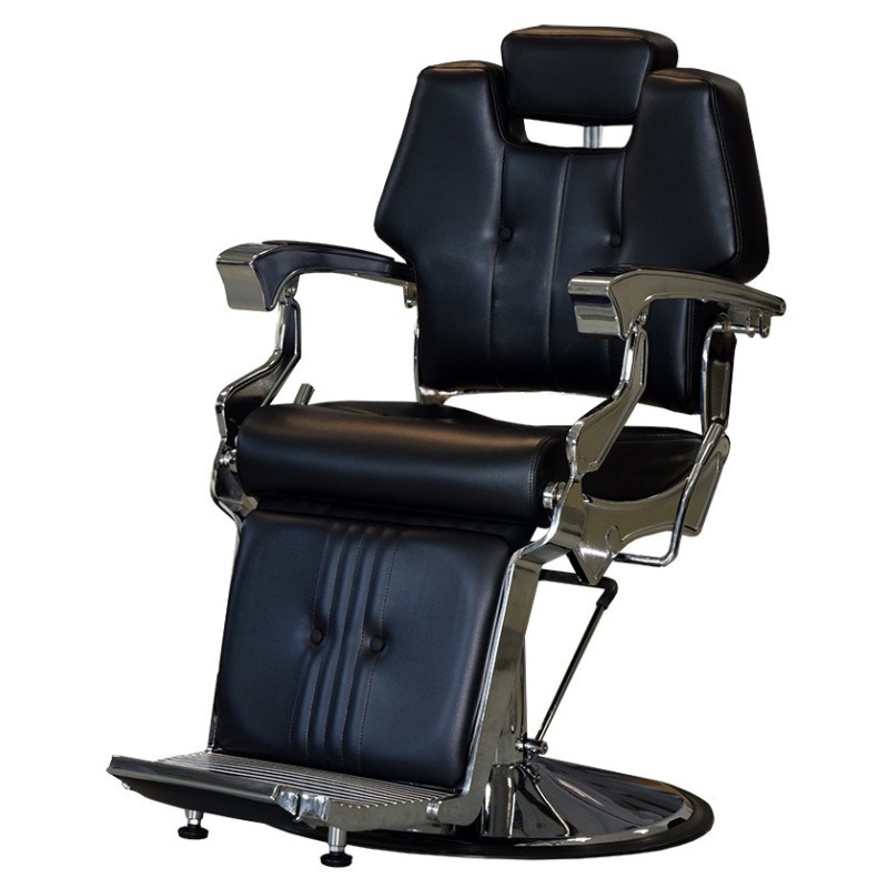 Fotel fryzjerski wyposażony w regulację zagłówka z blokadą oraz regulowany kąt nachylenia oparcia