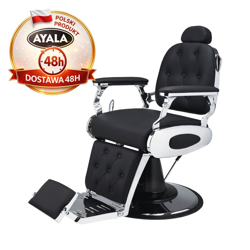 Fotel fryzjerski Lion czarny Ayala 48 to wyjątkowy i luksusowy wybór dla każdego salonu fryzjerskiego. Inspirowany naszym kultowym fotelem Tiger, Fotel barberski LION doskonale sprawdzi się zarówno dla fryzjera, jak i dla klienta.