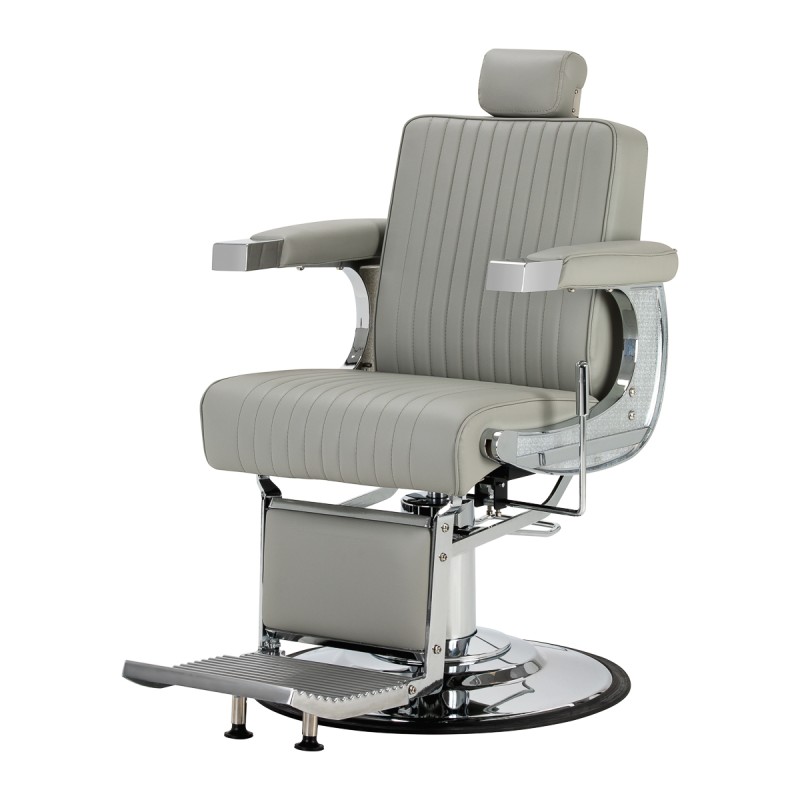 Szary fotel barberski Ragusa chrom