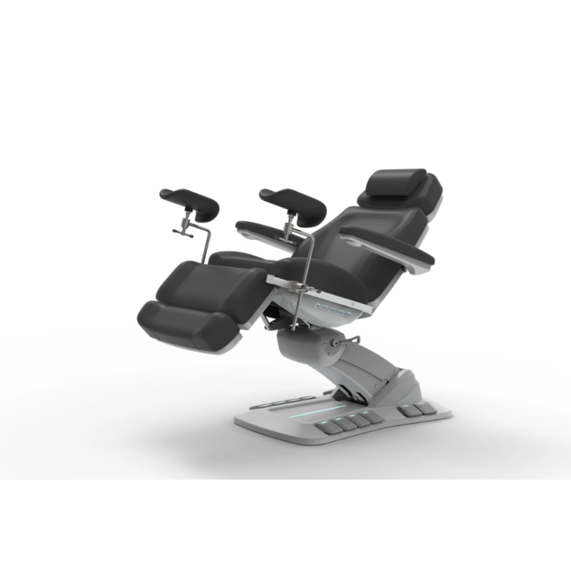 Z kolei bardzo pomocna funkcja MEMORY, w szybki i prosty sposób pozwoli nam na zapamiętanie 2 DOWOLNYCH USTAWIEŃ FOTELA, najczęściej stosowanych podczas pracy. Pozycja TRENDELENBURA z możliwością ustawienia w zakresie 0-20° jest bardzo przydatną opcją przy wykonywaniu wielu zabiegów. Zdejmowane podpórki ginekologiczne są świetną alternatywą, gdy po prostu w danym momencie nie są potrzebne.