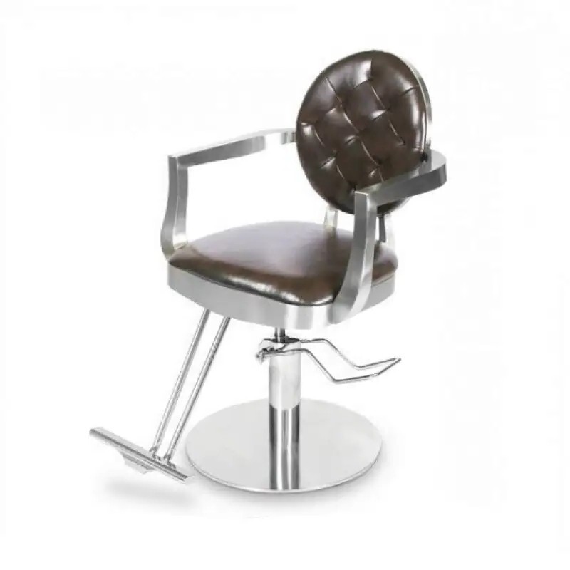 Efektowny fotel fryzjerski LOUIS, który nada każdemu wnętrzu luksusowy wygląd. Jego prosta lecz niebanalna forma będzie ozdobą każdego salonu. Obicie jest z wysokogatunkowego skaju. Fotel wyposażony jest w pompę hydrauliczną, pozwalająca na sprawną regulację wysokości fotela. Metalowe podłokietniki z matowego chromu oraz ergonomiczny ich kształt sprawia, że jest przyjazny dla klienta. Funkcjonalny podnóżek, to wsparcie dla nóg. Cała podstawa jest okrągła z matowego chromu.