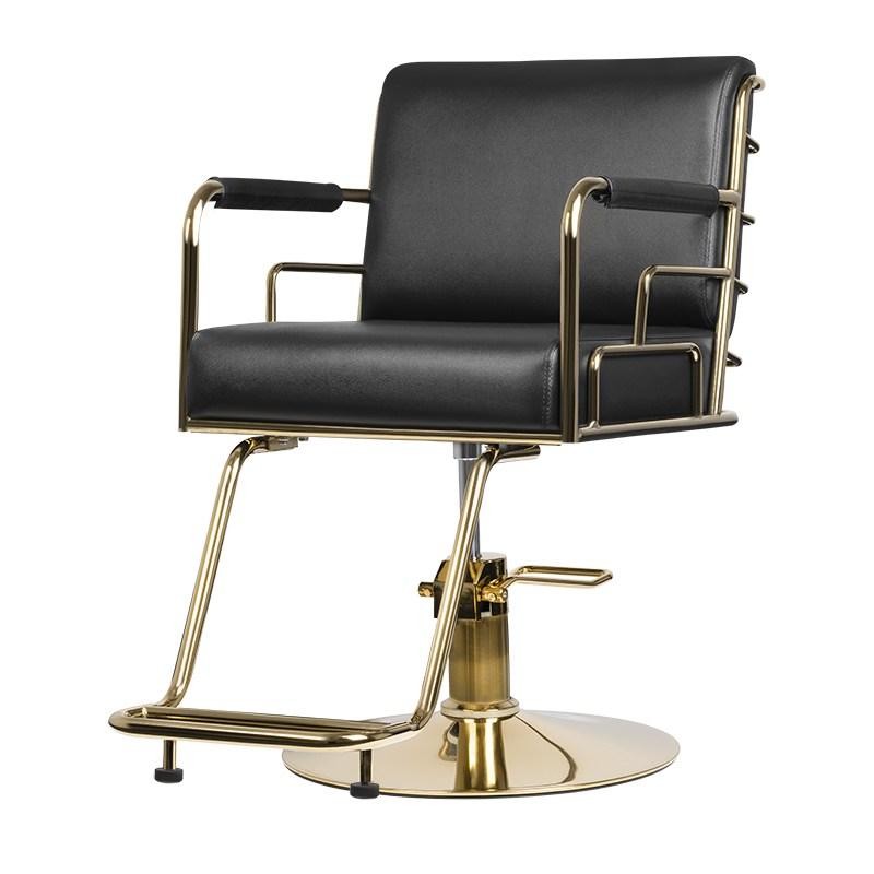 Fotel fryzjerski Prati w eleganckim złotym kolorze z czarnymi akcentami to idealny wybór dla profesjonalistów w branży fryzjerskiej. Jego nowoczesny design oraz komfortowe wykończenie sprawiają, że każda wizyta w salonie będzie przyjemnością zarówno dla klienta, jak i fryzjera.
