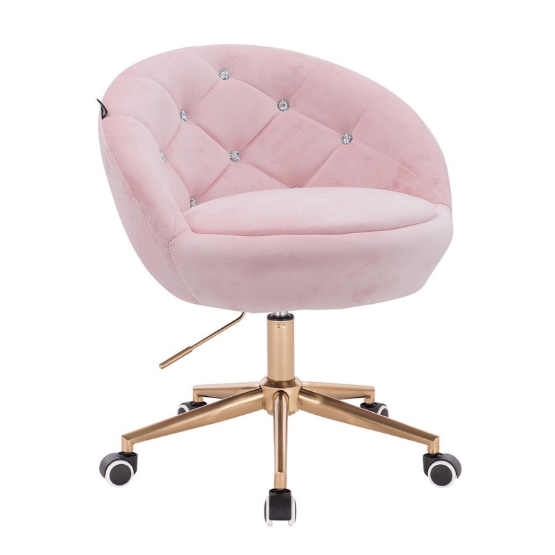 Fotel Hr948K Pudrowy Róż Welur Złota Podstawa