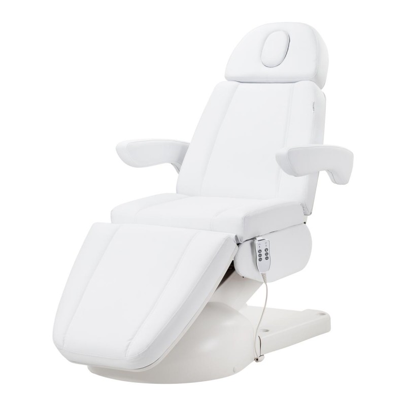 Elektryczny fotel kosmetyczny Zaffiro Lux 3m biały jest wyposażony w 3 siłowniki sterowane pilotem przewodowym co umożliwia płynną i precyzyjną regulację poszczególnych elementów.
