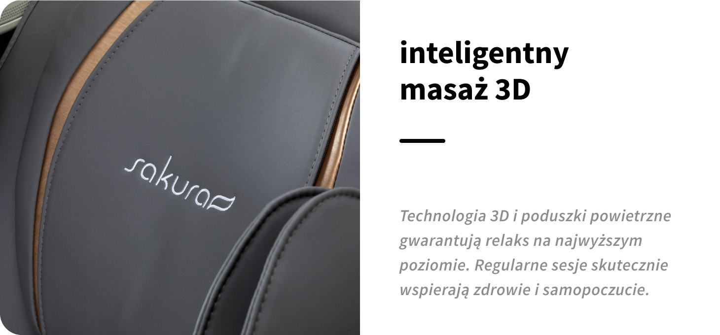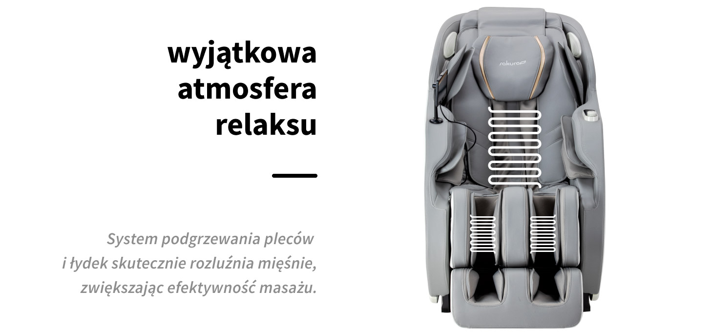 Fotele masujące Sakura zapewniają relaks oraz wysoki komfort użytkowania. Są również doskonałym sposobem, by zadbać o zdrowie oraz samopoczucie. Różnorodne funkcje oraz prostota obsługi sprawiają, że fotele tej marki są doskonałym wyborem zarówno do gabinetu masażu, jak i w użytku domowym. Wykonane z dbałością o szczegóły staną się estetycznym elementem każdej przestrzeni.
