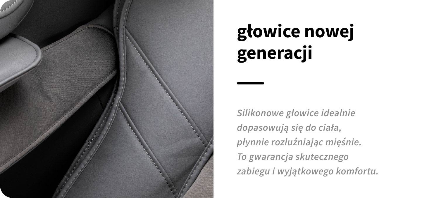 Cztery wysokiej jakości głowice masujące odpowiadają za precyzyjne opracowanie całej strefy pleców. Ich wielokierunkowa praca pozwala na dokładne docieranie do napiętych obszarów i skuteczne rozluźnianie mięśni. Nowoczesne głowice wykonane z elastycznego silikonu dopasowują się do kształtu ciała, zapewniając równomierny nacisk oraz wysoki komfort nawet podczas intensywniejszych sesji. Zastosowany materiał zwiększa efektywność działania i pozwala uzyskać naturalne, płynne odczucia zbliżone do pracy ludzkich dłoni.