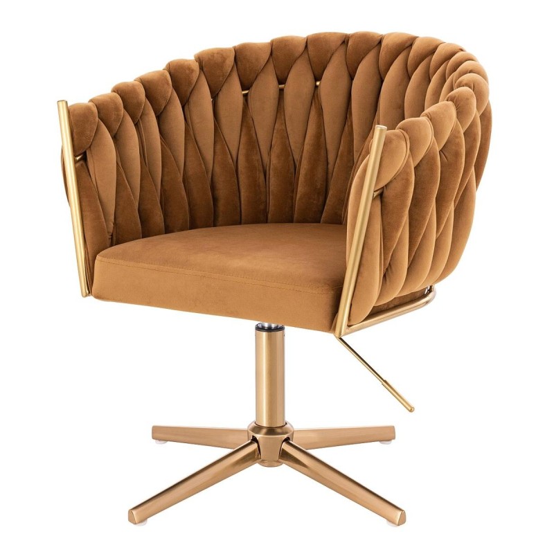 Fotel MEERA Cross Miodowy Welur Złota Podstawa
