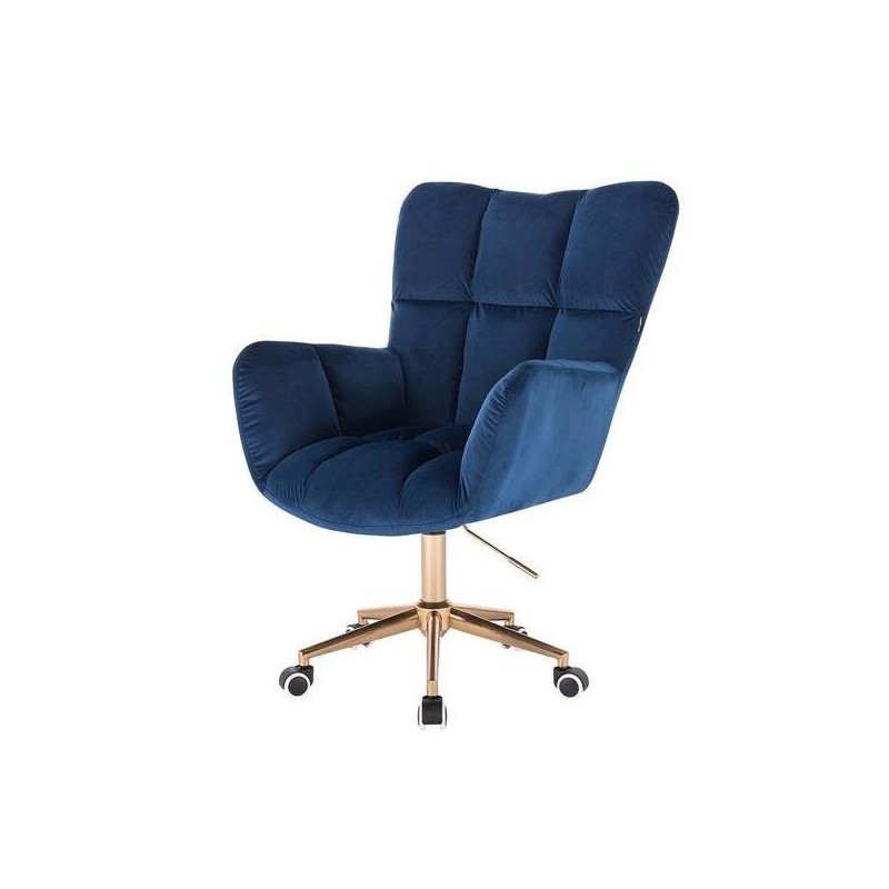 Fotel Pedro K Ciemne Morze Welur Złota Podstawa