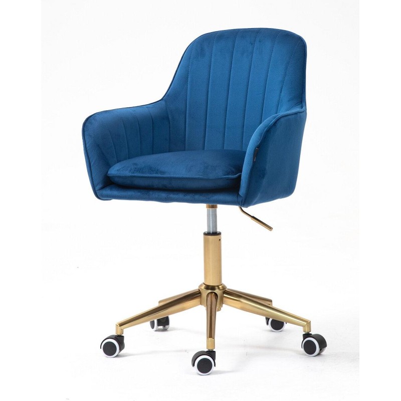 Fotel welurowy DAVOS K Ciemne Morze – Złota Podstawa