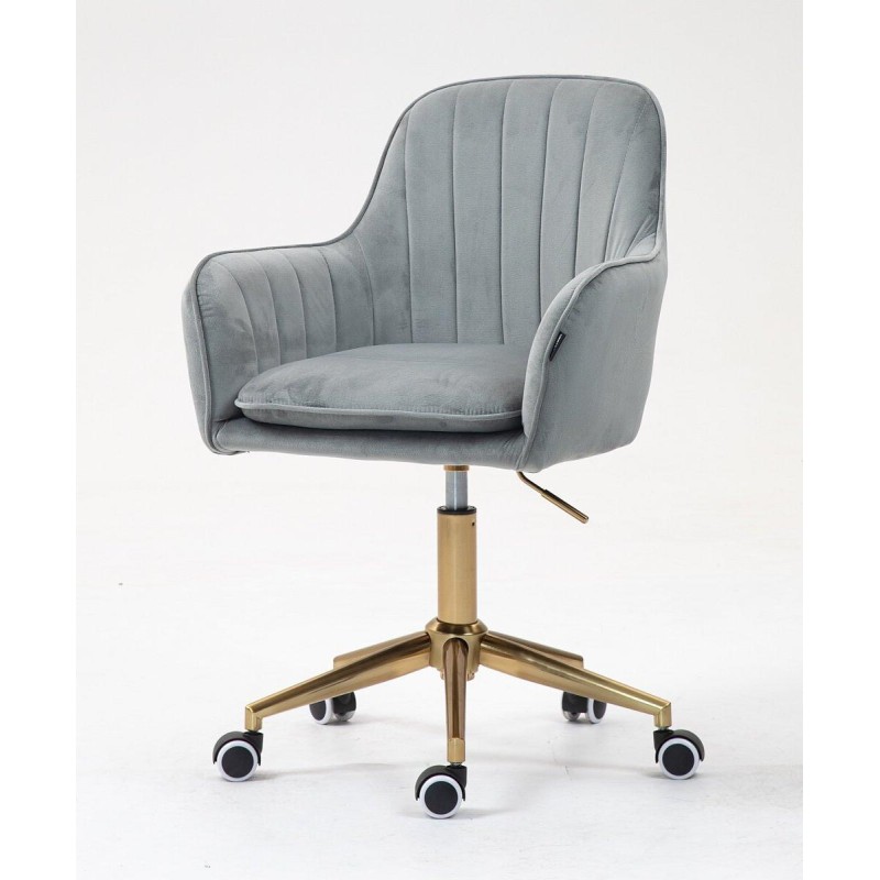 Fotel DAVOS K Stalowy Welur Złota Podstawa