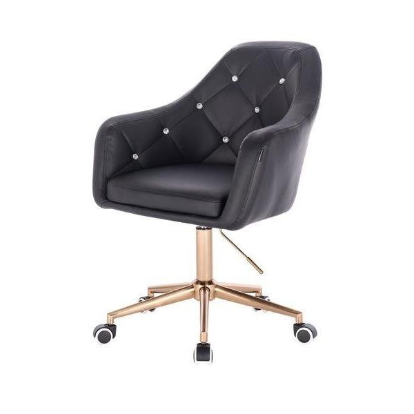 Krzesło kosmetyczne Blink Czarna ekoskóra Złote kółka