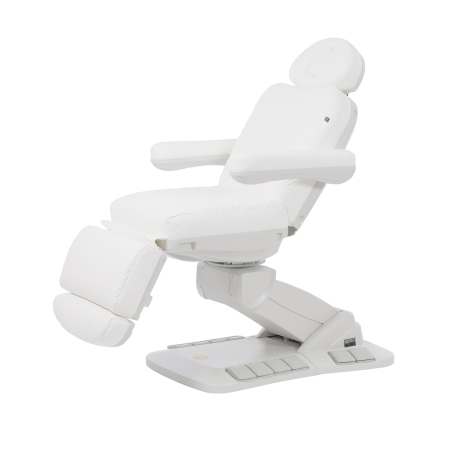 Fotel kosmetyczny elektryczny MEDIKO + wyróżnia się komfortowym siedzeniem, obrotową konstrukcją oraz możliwością indywidualnego dostosowania ustawień za pomocą pilota. Jest idealny do zabiegów w medycynie estetycznej.