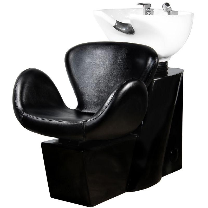 Profesjonalna myjnia fryzjerska -stabilna, niezwykle wygodna, solidnie wykonana. Nowoczeny design czyni z niej piękne dopełnienie wyposażenia nowoczesnego salonu fryzjerskiego. Siedzisko o opływowym kształcie, wykonane z wysokiej jakości łatwej w pielęgnacji ekoskóry. Silikonowa podkładka pod głowę stabilizuje głowę klienta i pozwala na jej wygodne ułożenie na myjce. Misa myki w kolorze białym, z możliwością regulacji swojego nachylenia. Myjnia w kolorze czarnym.