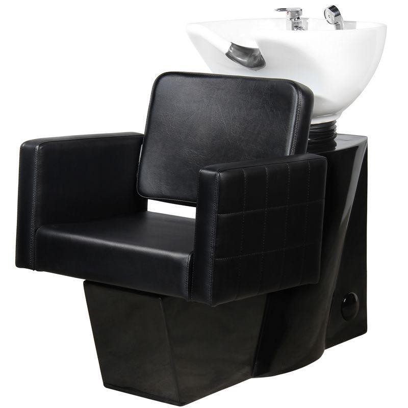 Profesjonalna myjnia fryzjerska -stabilna, niezwykle wygodna, solidnie wykonana. Nowoczeny design czyni z niej piękne dopełnienie wyposażenia nowoczesnego salonu fryzjerskiego. Siedzisko wykonane z wysokiej jakości ekoskóry, z ciekawym przeszyciem bocznym. Silikonowa podkładka pod głowę stabilizuje głowę klienta i pozwala na jej wygodne ułożenie na myjce. Misa myki w kolorze białym, z możliwością regulacji swojego nachylenia. Myjnia w kolorze czarnym.