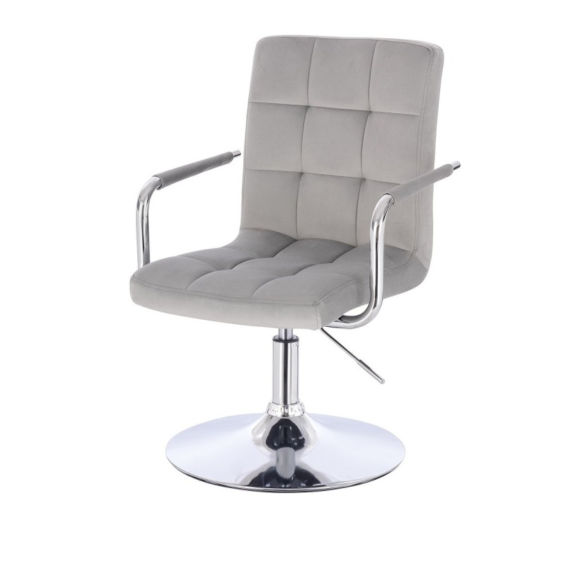 , Materiał fotela: welur, Kolor podstawy: srebrna, Typ podstawy: płaska, Kolor fotela: stalowy, Dostępność: Jest, AI: generuj, and .