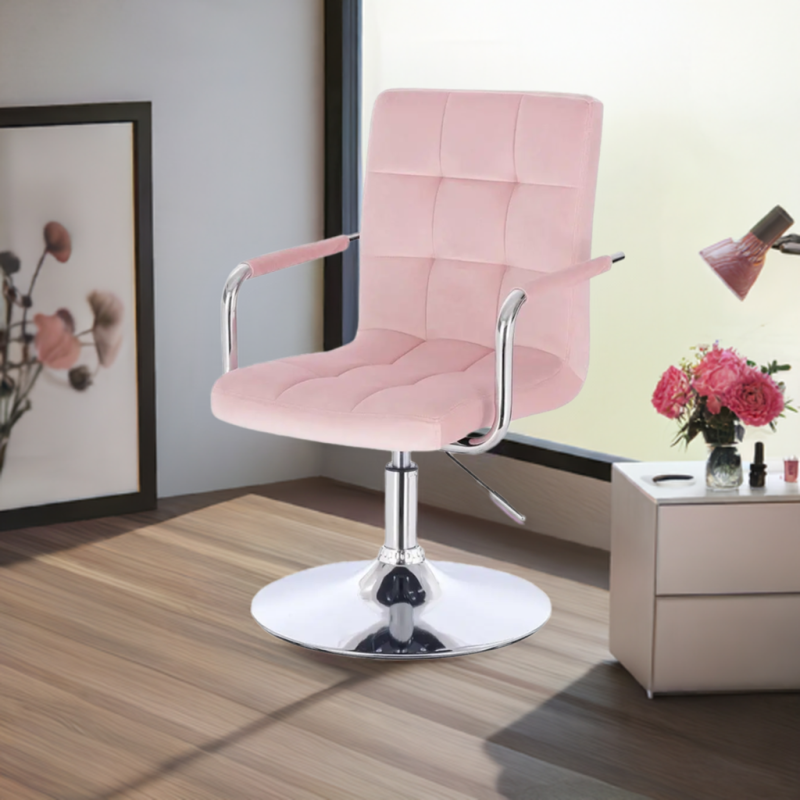 , Materiał fotela: welur, Kolor podstawy: srebrna, Typ podstawy: płaska, Kolor fotela: pudrowy róż, Dostępność: Jest, GroupID: 3392, and .