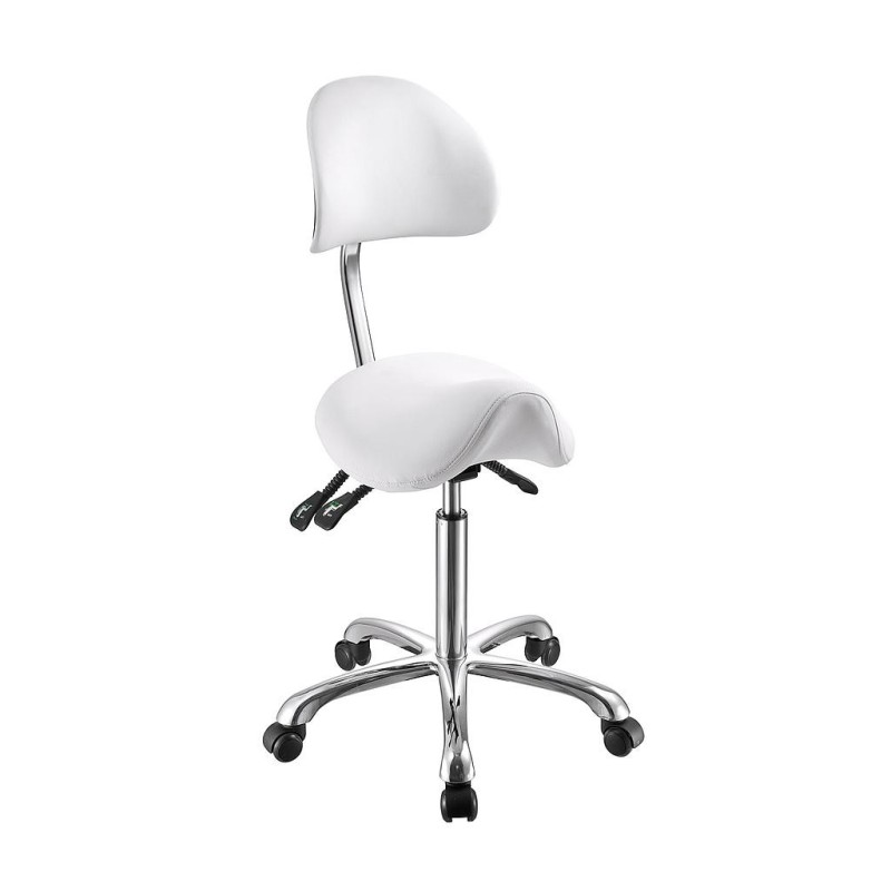 Hoker kosmetyczny w kształcie siodła NOBLE to doskonałe rozwiązanie dla profesjonalistów z branży kosmetycznej, fryzjerskiej oraz medycznej, którzy cenią sobie wygodę, funkcjonalność i nowoczesny design w swoim miejscu pracy.