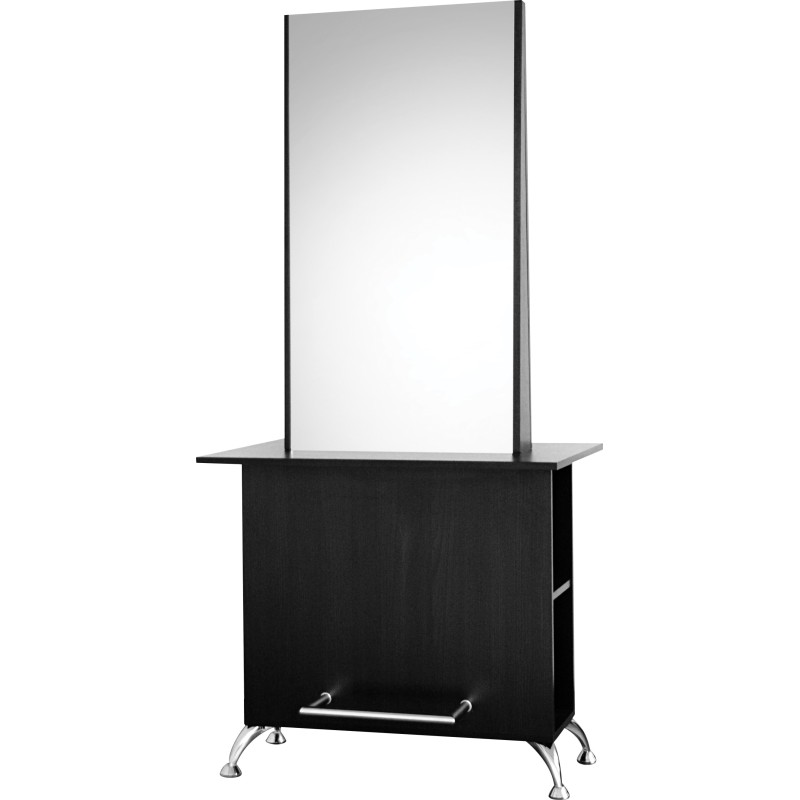 Konsoleta fryzjerska wolnostojąca to idealny wybór do niewielkich salonów fryzjerskich, kosmetycznych i braberskich. Mebel jest przeznaczony do użytkowania przez dwie osoby jednocześnie. Podnóżek zapewnia komfort dla Klienta, a półka dookoła lustra dostarcza dodatkowe miejsce do przechowywania kosmetyków i potrzebnych przyborów, wykorzystywanych przez stylistę w trakcie zabiegów. Proponowana konsola fryzjerska wolnostojąca świetnie sprawdzi się także w salonach barberskich.
