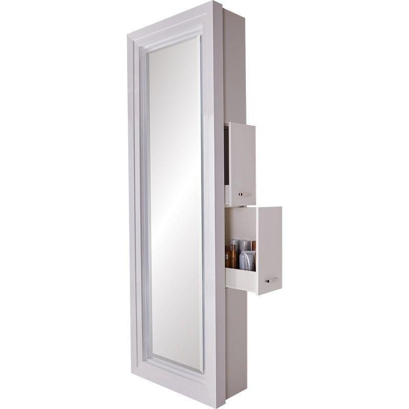 Bardzo solidna konsoleta fryzjerska wykonana z płyty MDF, lakierowana na wysoki połysk w kolorze białym lub czarnym. Konsoleta posiada podświetlenie LED w standardzie, co jeszcze bardziej podkreśla urok całego mebla. Konsoleta wyposażona jest z jednej strony w przydatne odkryte półki, natomiast z drugiej strony posiada dwie wysuwane szuflady cargo.