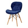 Siedzisko pokryte jest tapicerką z przyjemnego w dotyku welwetu w odcieniach czerni. Nadaje mu to ekskluzywny wygląd i zapewnia komfort użytkowania. Staranne przeszycia w geometrycznych kształtach stanowią elegancki sznyt, a łączący nogi metalowy stelaż w odcieniach czerni dodaje meblowi stabilności. Drewniane, matowo wykończone nóżki zakończono plastikowymi zabezpieczeniami, dodatkowo chroniącymi przed przypadkowym uszkodzeniem. Krzesło w stylu skandynawskim jest komfortowym meblem, który stanie się ozdobą recepcji każdego salonu kosmetycznego.