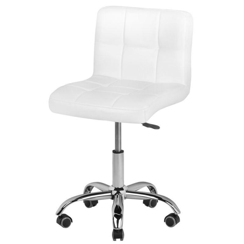 Nowoczesne krzesło kosmetyczne w kolorze białym. Bardzo wygodne siedzisko o nowoczesnym wygladzie, z ładnymi przeszyciami. Wysokiej jakości ekoskóra jest gwarancją łatwiej pielęgnacji mebla. Fotel regulowany w płaszczyźnie góra-dół. Kółka gumowane.